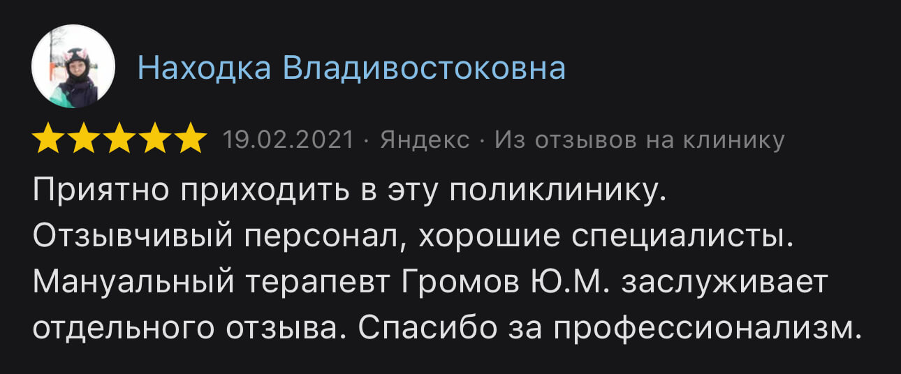 - Специализируется на лечении пациентов с заболеваниями опорно-двигательного аппарата, суставов, нарушениями сна и головными болями.