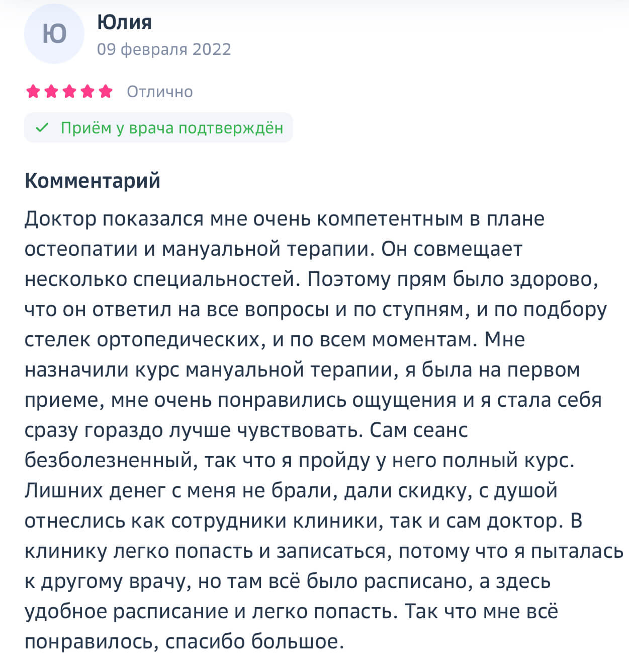 Врач-остеопат, мануальный терапевт, врач ЛФК, врач высшей категории